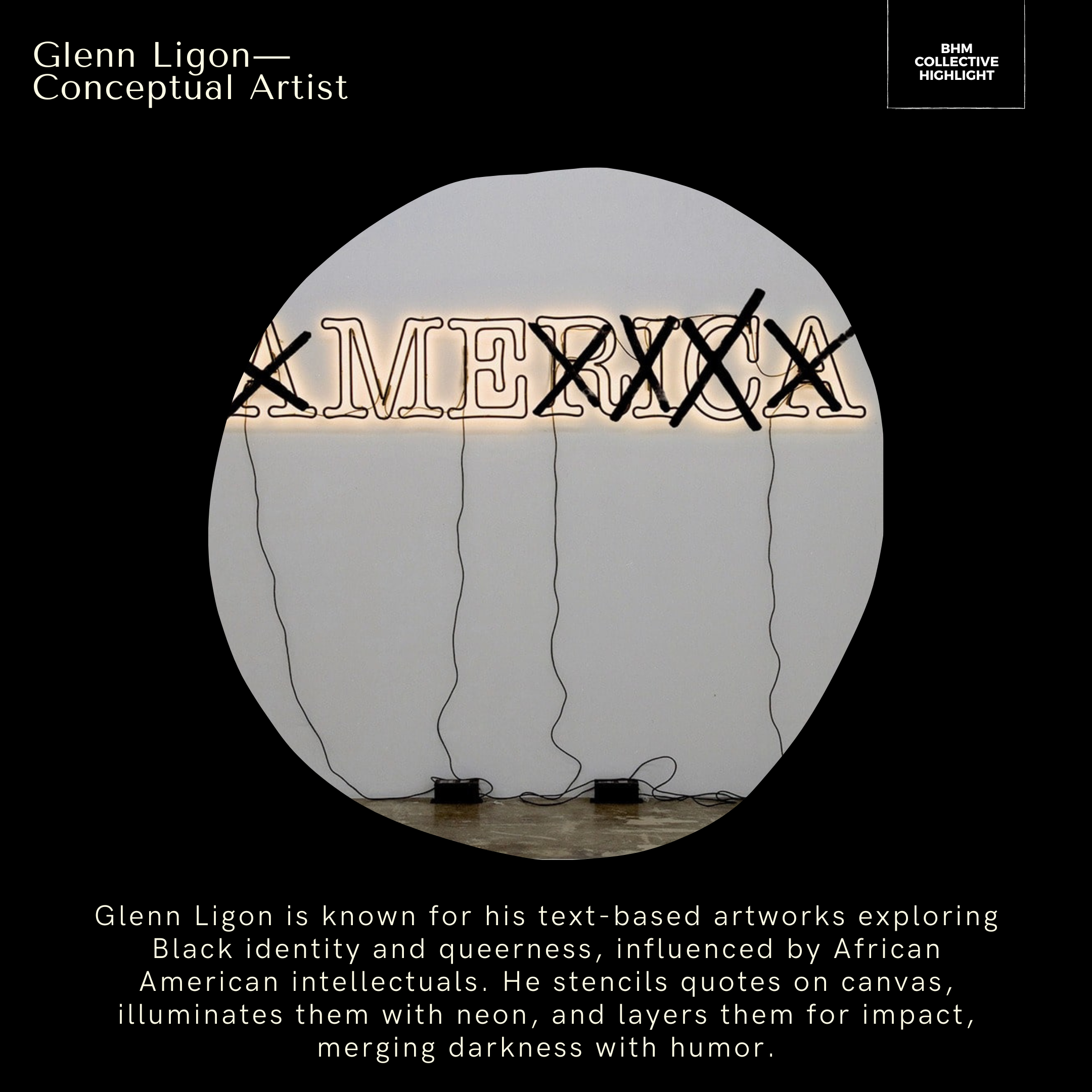 Ligon’s text-based works illuminate the complexities and nuances of identity, drawing from historical and literary sources to create layered and thought-provoking pieces. His art challenges viewers to consider the ways in which history and language shape our understanding of race and selfhood.